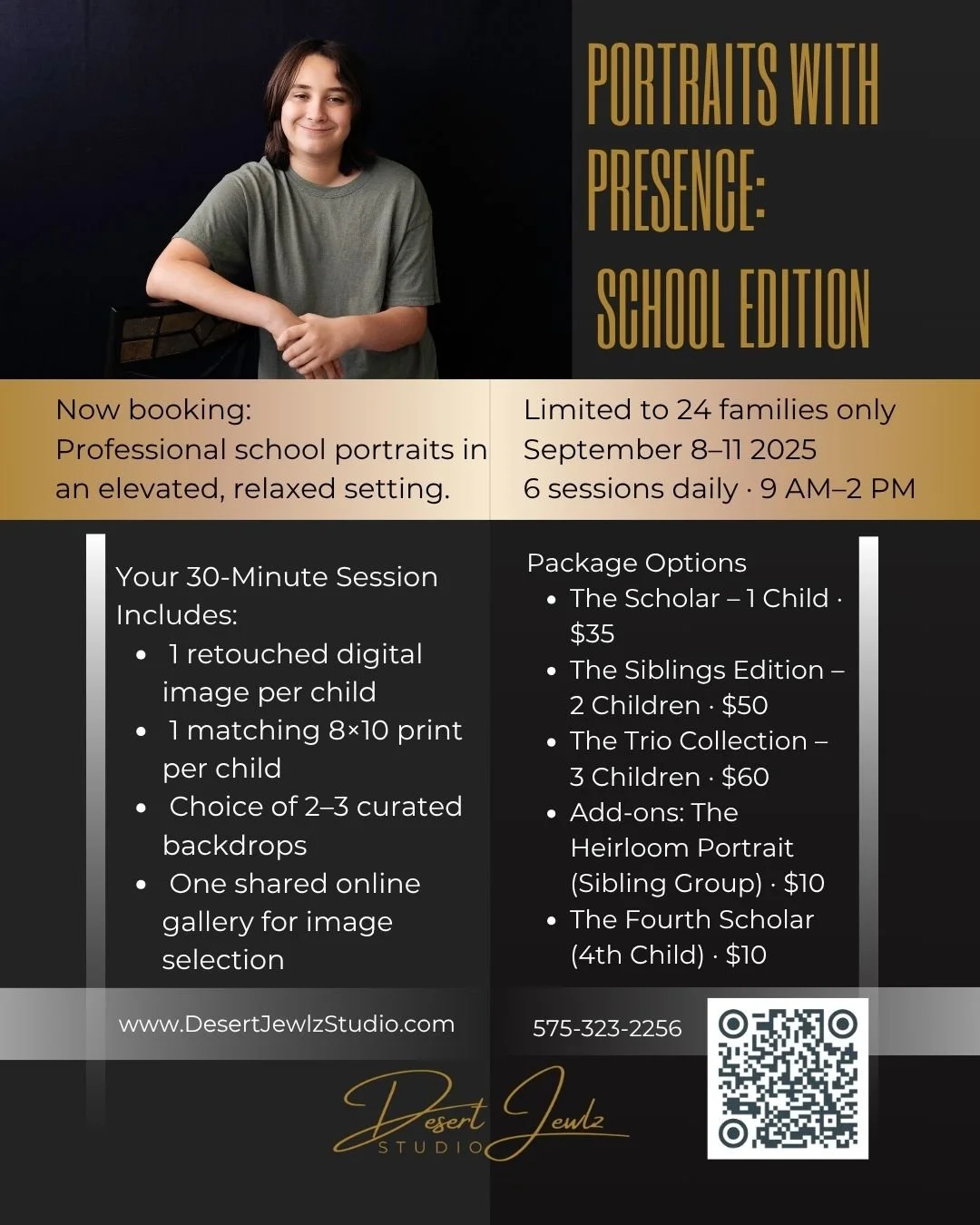 At Desert Jewlz Studios, we guide you through a relaxed, intentional portrait experience designed to bring out your natural expressions and best features—so you can feel confident, empowered, and truly yourself in every image.
